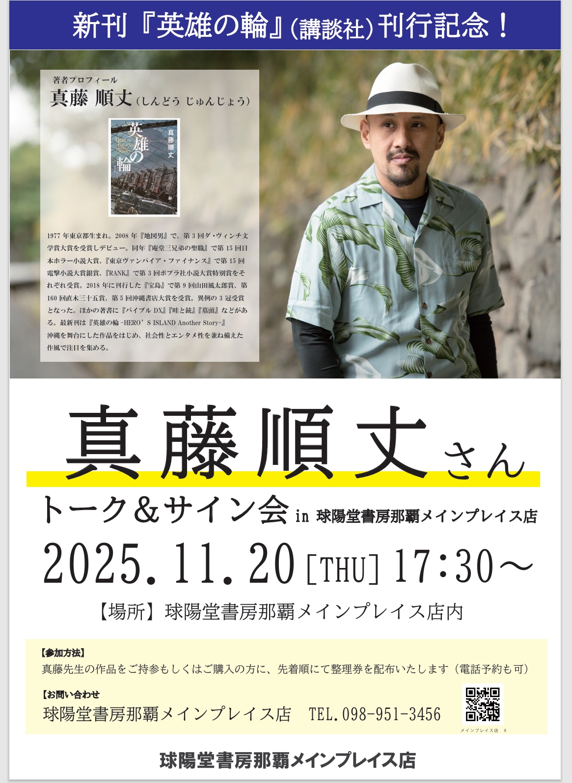 直木賞作家・真藤順丈さんが、待望の最新刊『英雄の輪』(講談社)の刊行を記念して来沖!