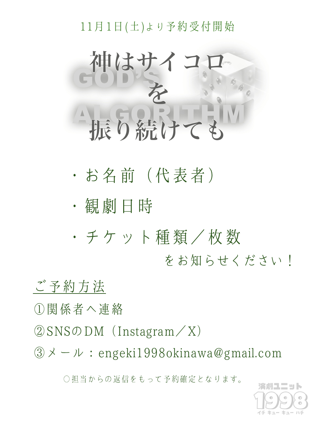 演劇ユニット1998 第1回企画公演 「神はサイコロを振り続けても -GOD’S ALGORITHM- 」