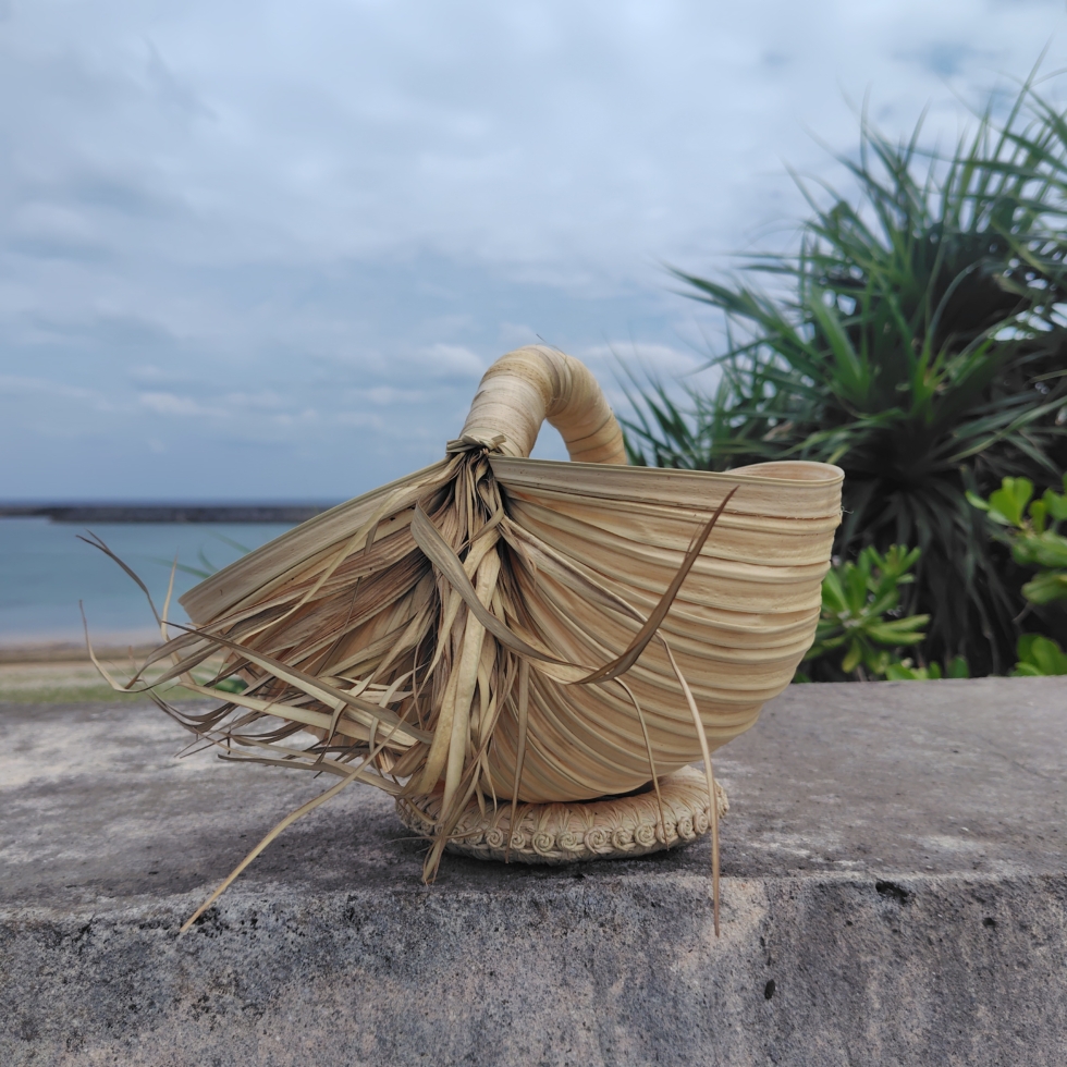与那国島より「よなは民具」の與那覇桂子さんを講師に迎え、クバの葉を使ったウブルとカブチづくりのワークショップを開催。クバの葉は乾燥させることで強度が増し、腐りにくくなります。「ウブル」はもともと井戸から水を汲み上げるためのバケツとして、「カブチ」は荷物を頭に載せるためのクッションとして使われてきました。昔ながらの民具や与那国島の文化を学びながら、現代ではインテリアとしても活用できる道具をつくります。