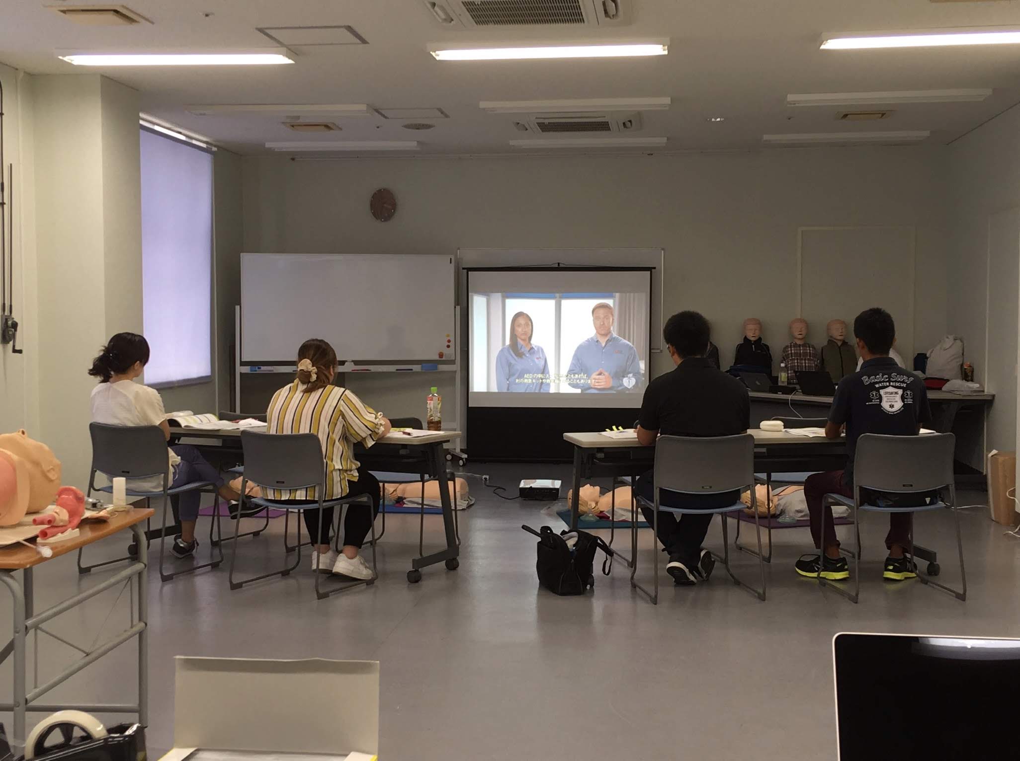 ※BLS沖縄主催の「赤十字救急法基礎講習」は胸部圧迫や口対口の人工呼吸の練習時間を多くとるため、感染防止の観点からひとり1体のトレーニングマネキンを使用するため少人数制としております。