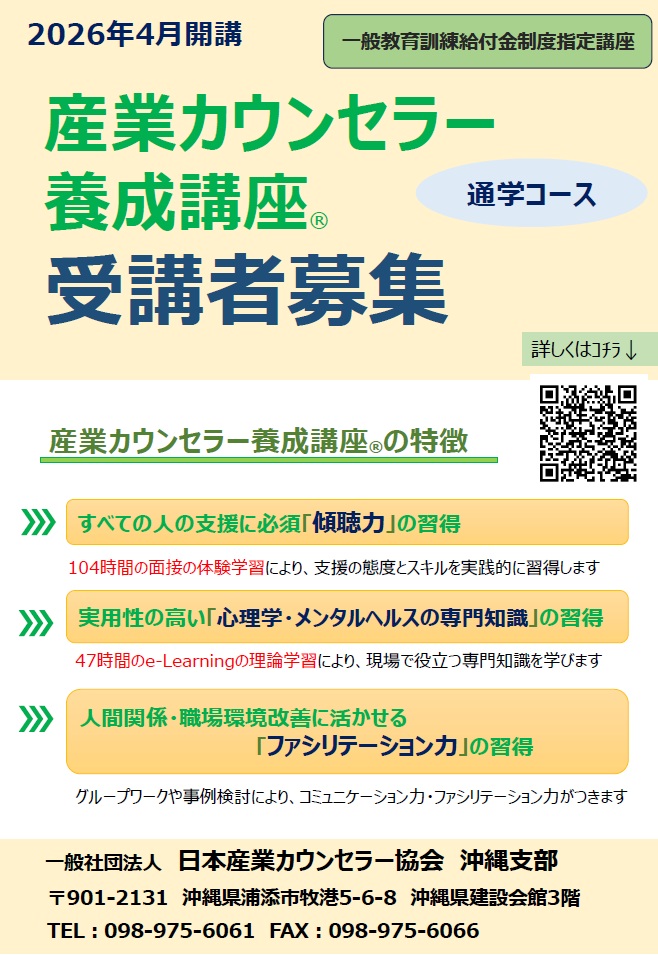 - 日本産業カウンセラー協会 沖縄支部(浦添市牧港)