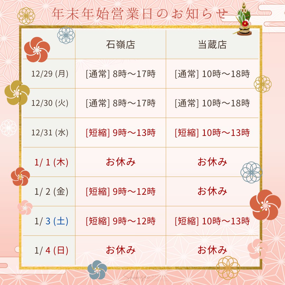 【年末年始営業時間のご案内】